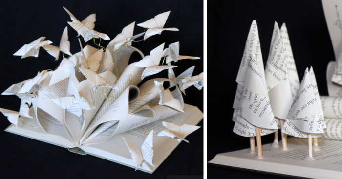 My name is Marielle JL. Because I am totally fond of books and literary, it was impossible for me to throw old books…. What can I did with them ?? So I began to change them in an artistic object, to give them another life….