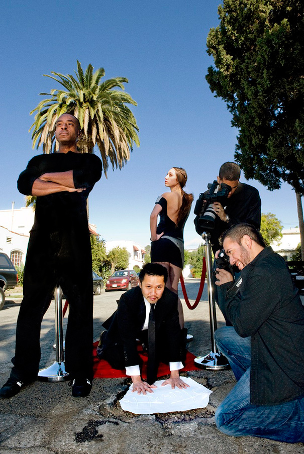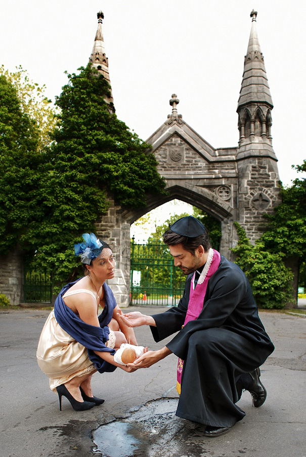 The idea for this project was born out of their individual experience after hitting a pothole in their own neighborhood in Montreal. First using themselves as models, Claudia and Davide were soon backed by their family and friends and the creative juices started running wild. What started off as a joke turned into quite a fun experience, taking them to cities like Toronto, New York, and Los Angeles. The artists say they’ve learned that sometimes changing our perspective on things is more important than actually fixing them.