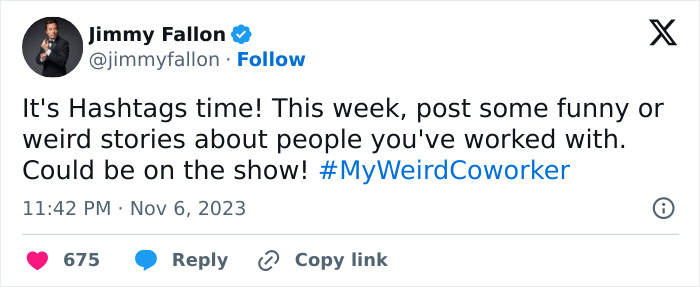 People shared some hilarious stories about their coworkers under the #MyWeirdCoworker hashtag. It was part of a long-going segment on the Tonight Show with Jimmy Fallon. The host asked Twitter users to post the wildest and most interesting stories about their weird coworkers, and boy, did they deliver.