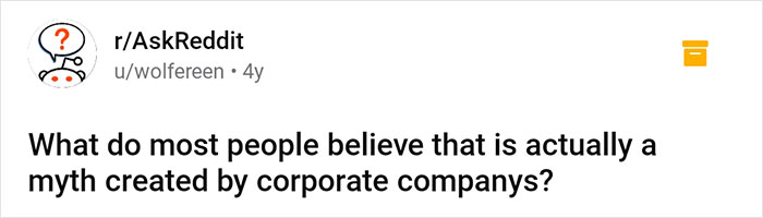 But this illuminating thread from Ask Reddit challenges the things we take for granted and debunks the myths created by big corporations. "What do most people believe that is actually a myth created by corporate companies?" someone asked and the eye-opening responses started pouring in.