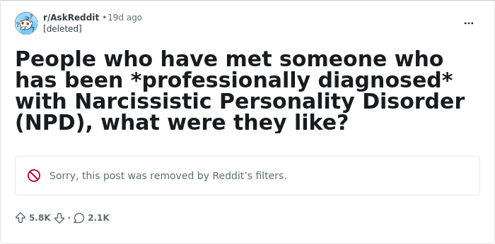 If it goes untreated, people’s behavior can end up traumatizing others, and these heartbreaking stories are living proof. Folks have shared their experiences meeting, dating, or living with someone professionally diagnosed with narcissistic personality disorder (NPD). Some of these are so distressing, they may shock you. Scroll down and check them out!