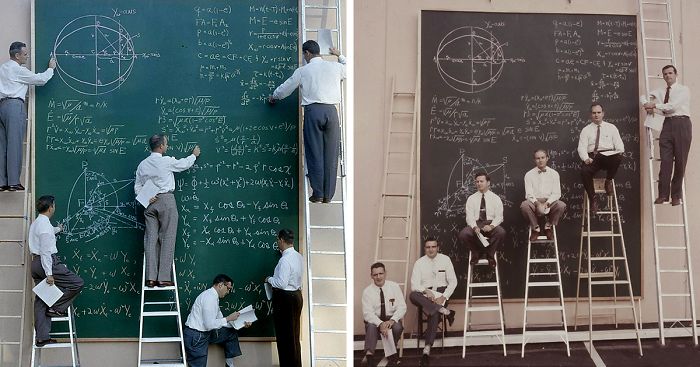 These days you can probably figure out how much fuel you need to get to the moon and back on a smartphone app, and if you want to know the weight of Neptune then you can simply search it on Google. But back in the 1961, scientists at NASA were still doing things with a piece of chalk and a giant blackboard. And believe it or not, they put the first US astronaut into space that very same year, a feat made all the more impressive when you remember that the electronic calculator hadn’t even been invented yet (h/t: vintage everyday)