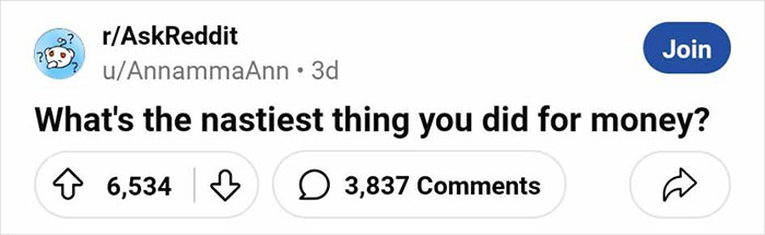 Determined to find out to what extent these words hold true, one person made a post on Reddit, asking its users to reveal the nastiest thing they did for money.