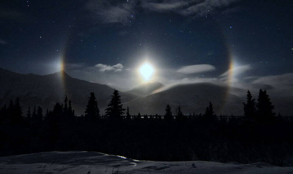 That is part of them - the two bright spots on the halo. There are multiple halos and arcs in this photo, though. Almost worth going to the artic to see this! But not quite.
