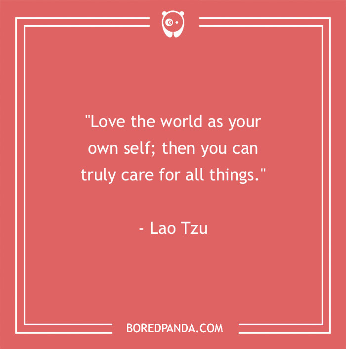 "Love the world as your own self; then you can truly care for all things." - Lao Tzu
