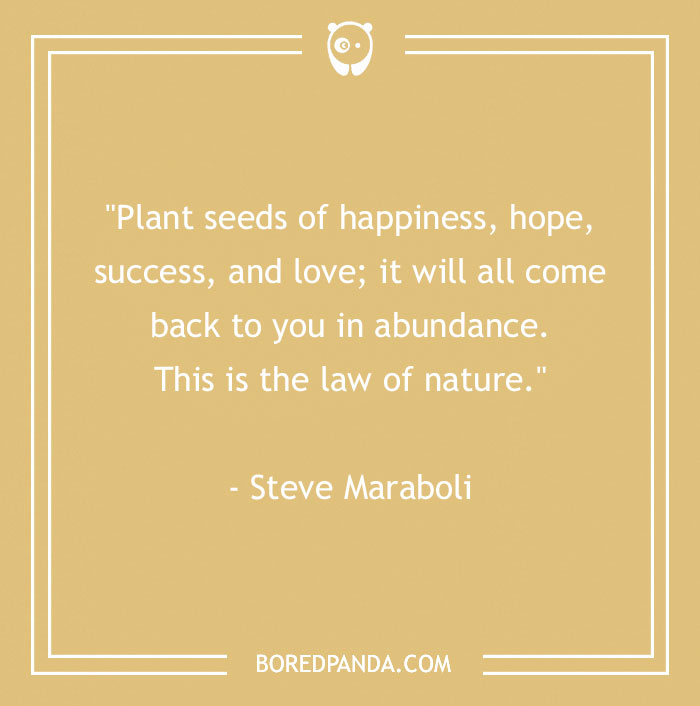 "Plant seeds of happiness, hope, success, and love; it will all come back to you in abundance. This is the law of nature." - Steve Maraboldi