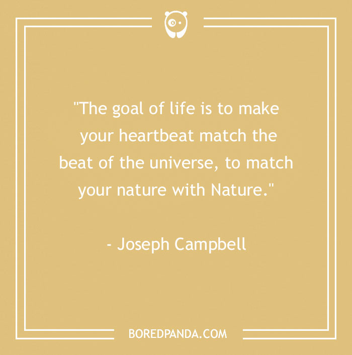 "The goal of life is to make your heartbeat match the beat of the universe, to match your nature with Nature." - Joseph Campbell