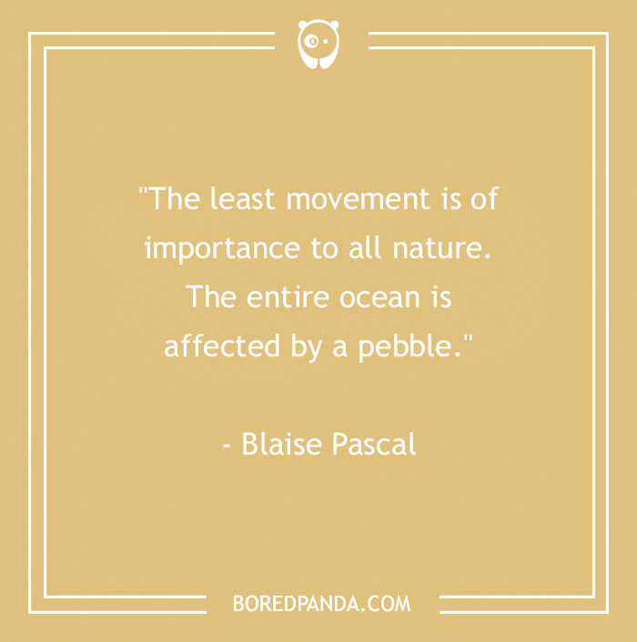 "The least movement is of importance to all nature. The entire ocean is affected by a pebble." - Blaise Pascal