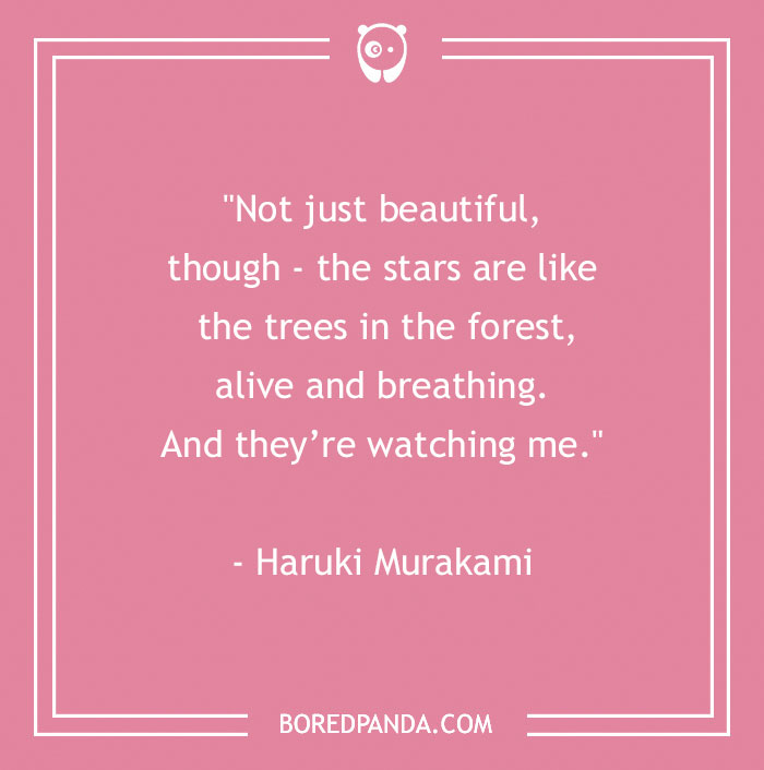 "Not just beautiful, though—the stars are like the trees in the forest, alive and breathing. And they’re watching me." - Haruki Murakami