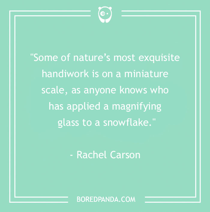 "Some of nature’s most exquisite handiwork is on a miniature scale, as anyone knows who has applied a magnifying glass to a snowflake." - Rachel Carson