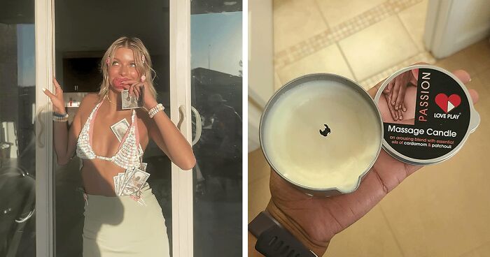 Interesting placement of money. I know womens' clothes don't have pockets, but.....