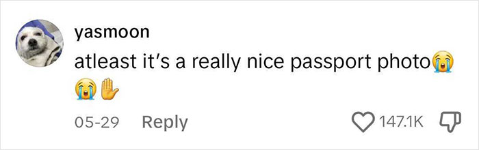 The video took off immediately. As of this article, it has over 14 million views with 2 million likes and heaps of engagement. Folks who got stopped for their drastically different passport pictures also chimed in, commiserating and relating to the humbling experience.