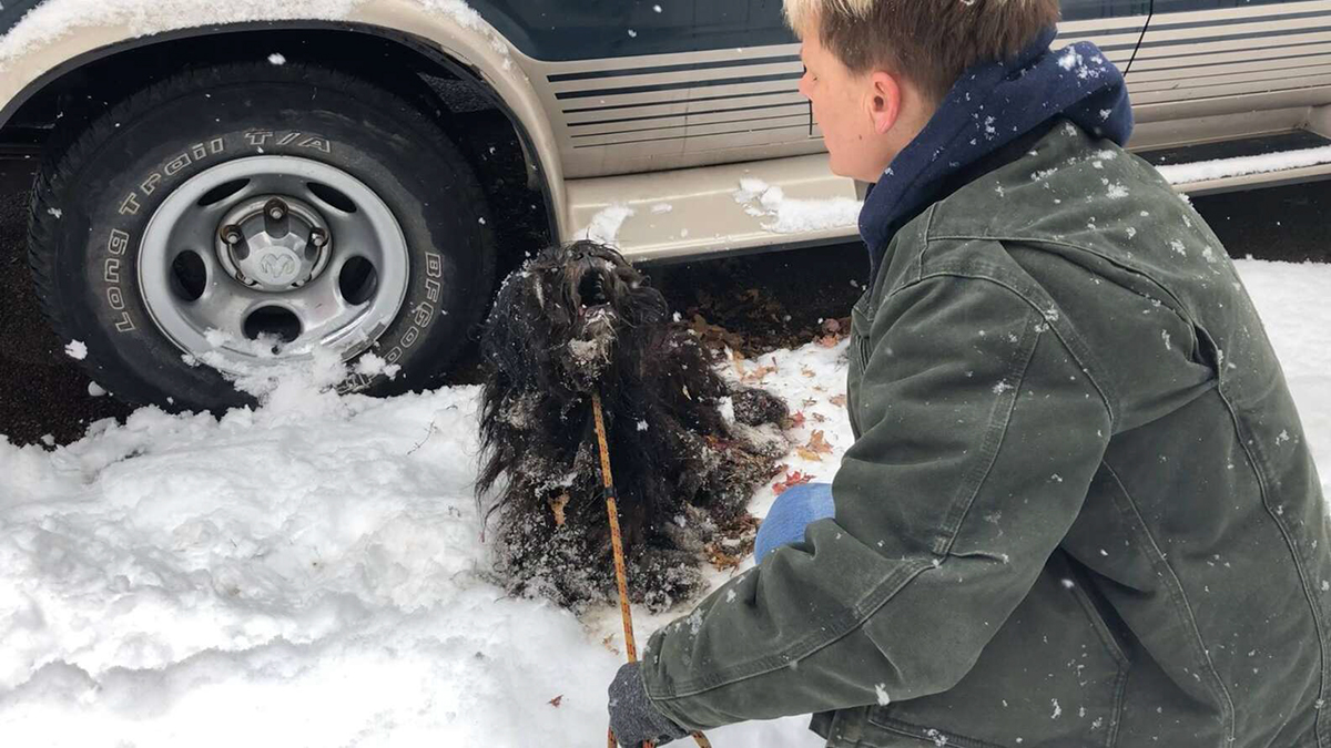 Donna didn’t wait any longer and crawled under the van. She put a leash over the dog’s neck and tried to somehow pull him out from that unforgiving situation. Underneath, the dog’s mats were already frozen to the ground.