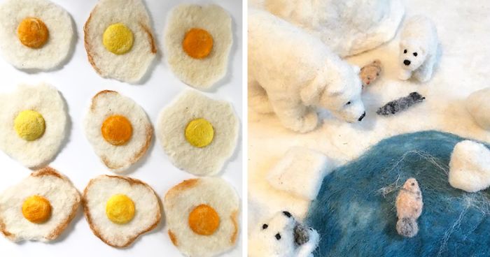 I felt the world around me. My whimsical creations often include realistic-looking food, birds, elements from Russian folklore, and nature references. My inspiration comes from memories of living in the former Soviet Union in the early ’90s, as well as my life today. Often symbolic in nature, my felted whimsies tell stories connecting past and present.
