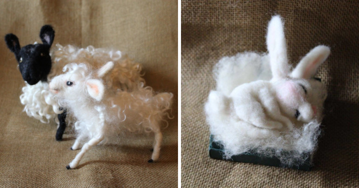 These little creatures were made using the craft of needle felting.