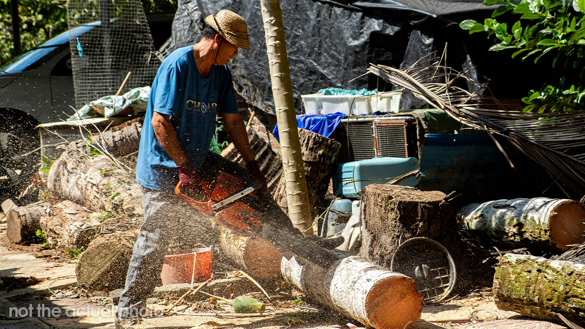 When they asked their slumlord neighbor to split the cost of removing some trees, the slumlord claimed he was broke