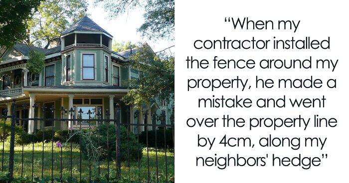 The neighborly dispute started when the Original Poster’s (OP) contractor made a mistake and went over the property line into the neighbor’s land when installing a fence. The neighbor was inflamed by this, even though the fence was over into the neighbor’s property by a mere 1.5 inches (4 cm), which was considered still in the margin of error for the contractor.