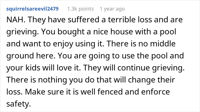 Redditor u/thepoolwhere turned to the AITA online community with a sensitive question. They and their family bought a new house with a pool. It turned out that one of the neighbor’s kids had, sadly, lost their life in that very same pool. You’ll find the full story below. Be aware that the topic ahead is a very sensitive one and some of you might feel uncomfortable reading it.