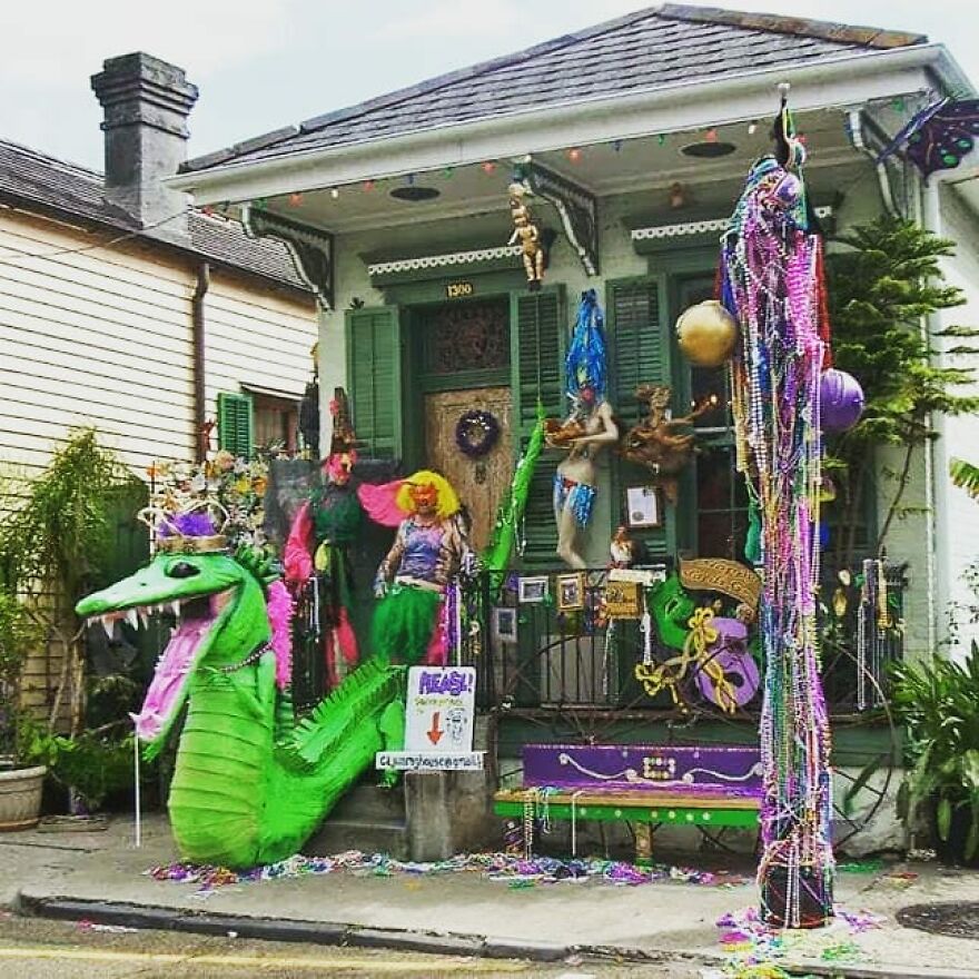 The whole idea, every house so creative. (Floats are too) And a FABULOUS way to turn lemons into a Bourbon HELL YEAH Cocktail!! I've always wanted to live in NOLA loved it since a childhood trip to Mardi Gras in 1968. I'd live there JUST to have my house painted ALL the wild and bright colors.