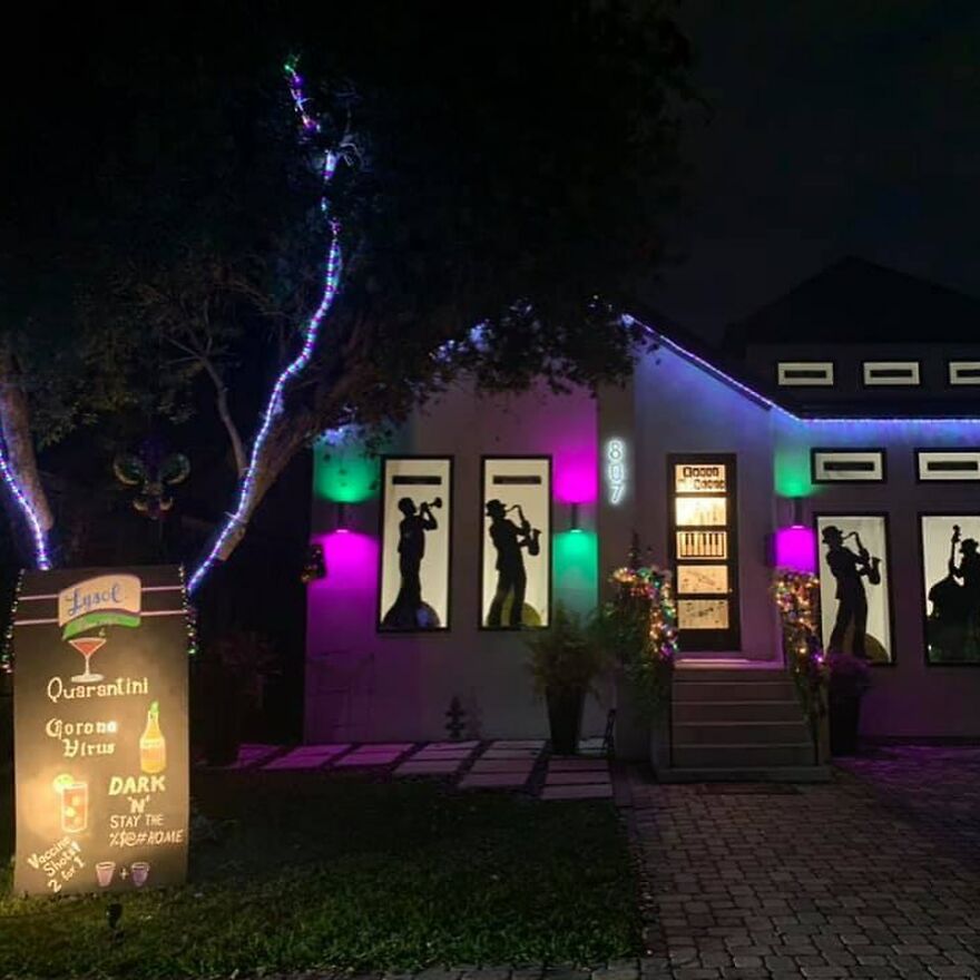 Welcome to Our Enchanted Lockdown Forest. Thank you for all the frontline workers who have kept us safe this past year. WE LOVE YOU. And, thank YOU for visiting our house float! If you're able to, please consider donating to the New Orleans Musicians' Clinic (Venmo-@musicians-clinic) & the Algiers Point Free Lil' Pantry (Venmo AlgiersPointFreeLilPantry) #OurEnchantedLockdownForest