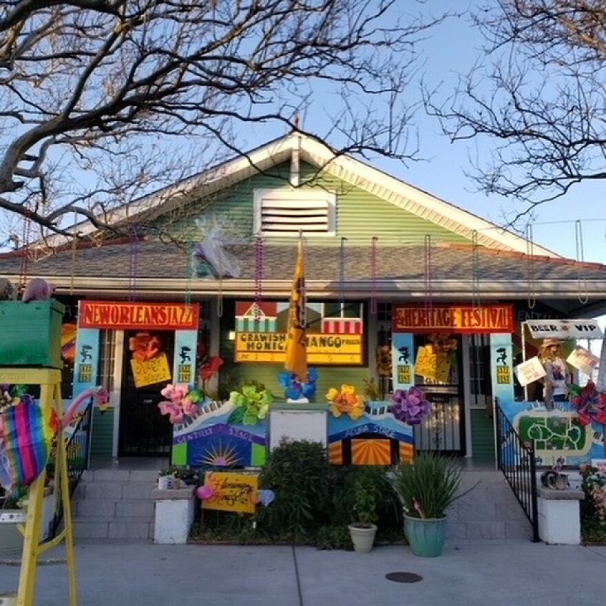 House honoring the New Orleans Jazz & Heritage Festival. The festival was canceled in 2020, and has been pushed back to October 2021. Organizers are very hopeful that there will be a festival in 2021.