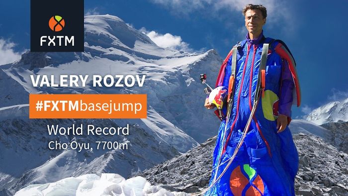 Russian BASE jumper Valery Rozov has broken the world record for the highest BASE jump in the finale of the #FXTMbasejump project. The Red Bull athlete, who partnered with FXTM for the feat, performed a successful jump from Mount Cho Oyu in China at 7700 metres. In this astounding accomplishment, Rozov has once again raised the bar of extreme sports higher – beating his previous 2013 record – breaking jump from the Everest Massif at 7220 metres. The jump from Cho Oyu was completed on 5th of October, following a 21-day expedition to the exit point. The jump took 90 seconds in free fall, then the opening of the parachute and the flight under the canopy lasted approximately 2 minutes before Valery Rozov landed safely on a glacier.