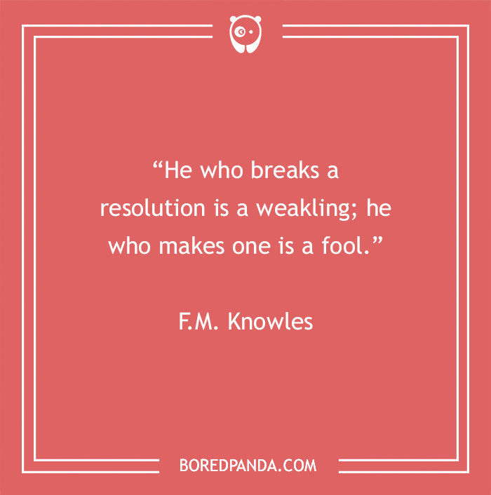 “He who breaks a resolution is a weakling; he who makes one is a fool.” —F.M. Knowles