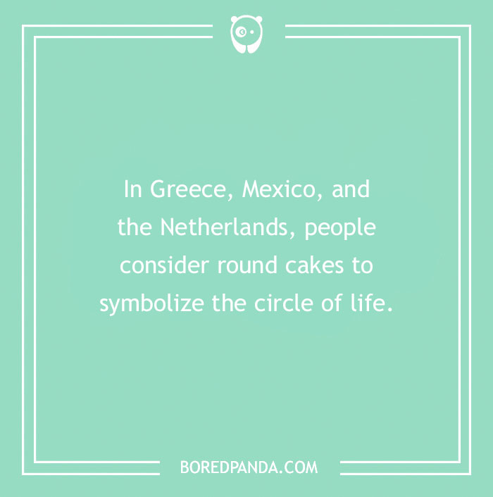 In Greece, Mexico, and the Netherlands, people consider round cakes to symbolize the circle of life.