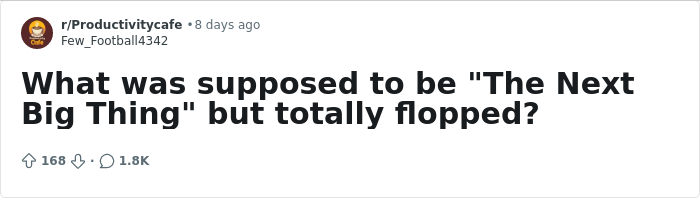 Someone asked an online community, “What was supposed to be ‘The Next Big Thing’ but totally flopped?” and netizens didn’t hold back with their answers. From NFTs to Cybertrucks, here’s a collection of some of our favorites.