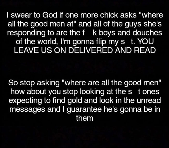 I’m starting to see that all these men are what they say they hate about women - illogical, over emotional, mood swings, too much talking, desperate, jealous…