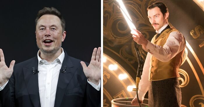 Instead of using a historical image, Musk instead opted to use a poster of the 2017 movie The Current War, in which actor Nicholas Hoult portrays Tesla as he gets taken advantage of by Thomas Edison in his competition against George Westinghouse.