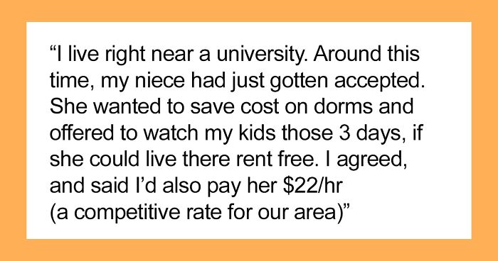 They made a deal for the niece to live at the woman’s house, take care of the kids these 3 days per week and get paid. 2 years went by with no complaints, but then she got an internship, meaning she will not be able to take care of the kids anymore. The OP offered to help her niece find a new place to live, which was met with confusion.