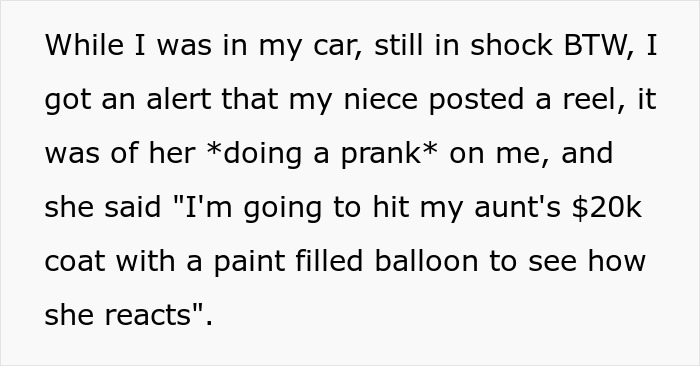 This situation is unfortunate all around. The woman lost her beautiful coat that was a gift from her mother-in-law, and her relationship with her sister and aunt is likely permanently tarnished, regardless of whether they end up going to court or not. Many readers agreed that this woman is justified if she decides to seek legal action. Of course, nobody needs a $20k coat in the first place, and she is well aware that it is luxurious, as she mentioned in the post. But causing $20k worth of damage in someone’s home or car would be frowned upon without any questions, so this shouldn’t be any different. Let us know in the comments what you think about this situation, pandas, and if you’ve ever found yourself in a legal dispute with a family member, feel free to share your personal stories as well. Then if you’d like to read another Bored Panda article about pranks gone wrong, look no further than right here.