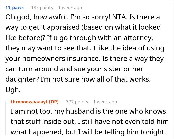 Below, you can find the full story that this frustrated aunt recently shared on the Am I the [Jerk]? subreddit wondering if suing her sister and niece would be an overreaction to the thousands of dollars in damages caused. We would love to hear your thoughts on the situation down below, pandas, and then if you’re interested in checking out another Bored Panda article featuring a prank gone wrong, you can find that right here!