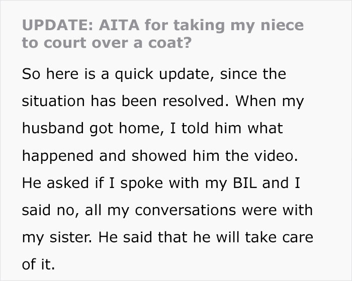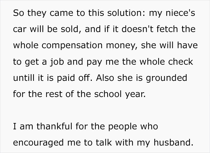 The woman later shared an update on the situation and explained what her niece’s punishment will be