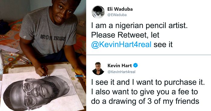 Talented Young Artist Draws Incredibly Realistic Portrait Of Kevin Hart, Can’t Believe He Actually Responds On Twitter