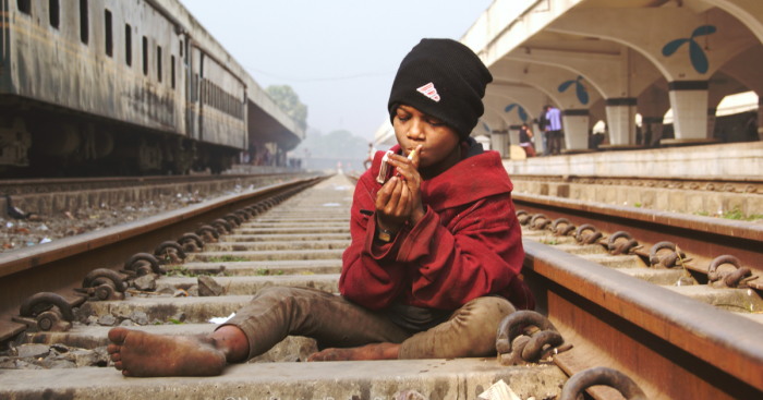 Kamalapur Railway Station, Dhaka. The largest railway station of Bangladesh and the most important terminal for railway transportation between Dhaka and the rest of Bangladesh. Lots of street children live here and most of them don’t know about their family. For some children, this station is both their birthplace and death place. Most of these children are illicit offspring of poor females. Some of these children grow up to be thieves, some carry baggage for railway passengers and others collect and sell empty plastic bottles for money. Some of these children are also those who are abandoned by their parents who cannot facilitate for them. Under these circumstances, girl children usually grow up to engage in prostitution while boys grow up to become drug addicts. Many NGOs work hard to give them a brighter future but it is not enough.