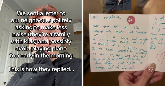 Martina’s neighbors, who are a family, were being noisy. More specifically, there was quite a lot of piano noise coming from their home. So, Martina’s household decided to send these neighbors a letter asking them to make less noise with the piano, especially in the early mornings. To talk a bit more about music in contexts like these, Bored Panda reached out to music educator Bryson Tarbet from “That Music Teacher.”