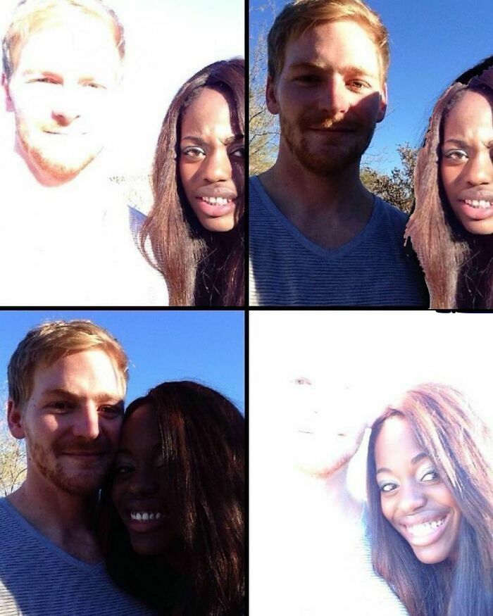 Load More Replies...just switch sides. can't be that hard that the person with the darker skin shade faces directly the sun and the one with the lighter shade faces not the sun.