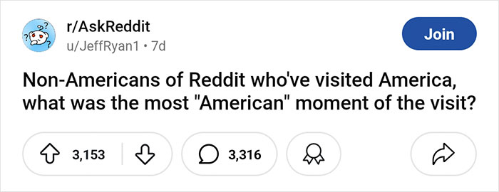To find out how this conversation about classic American experiences started in the first place, we reached out to Reddit user JeffRyan1, who invited others to share their stories about visiting the United States. He was kind enough to have a chat with Bored Panda and reveal what inspired this thread.