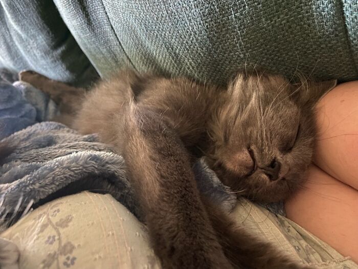 My 15 lb void Jack cuddles like this. He was the runt of his litter, so we always held him like a baby. He’s 8 years old now, and still our baby. Always will be our baby. Even though we have other cats.