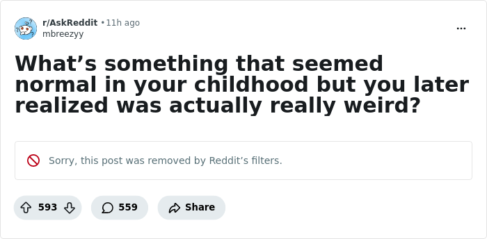 At the heart of these stories is a funny little truth. "Normal" is often just whatever you grew up with. What felt completely ordinary at the time can turn out to be hilariously strange when seen from the outside, and that realization is something almost everyone experiences sooner or later.