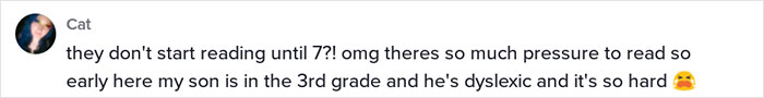 My oldest son is in the US equivalent of the third grade. He just now started getting homework this year, and his homework is to read for 15 minutes a day in whatever book he chooses. He's also never received a grade. I don't know when that starts. Oh, kids here don't start reading until they turn seven, in the US, there's pressure to start reading by five.