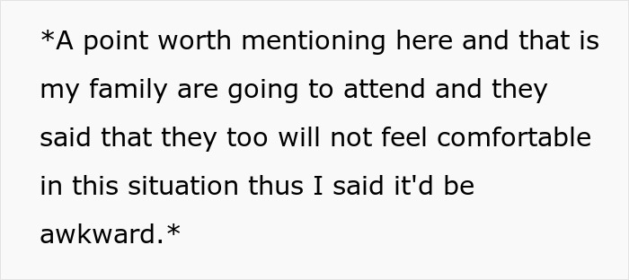 The woman then added some extra commentary, saying that her family who are also going to attend the celebration revealed that they would not feel comfortable, hence why she said that it was going to be “awkward.”