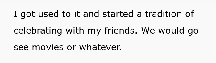 To avoid confusion, the author answered a few questions in the comments regarding the recent event. First of all, her dad asked her to be home for dinner that night, to which OP answered that if nothing came up, she would be home. Because yeah, as you can imagine, after not celebrating any occasions for so many years, you just stop expecting some miracle.