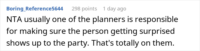 Load More Replies...We planned a surprise party for my Mom's 75th birthday. My sister had secretly gotten all of her friends email addresses and sent out a group message listing date/time/location. One of her IDIOT friends sent my MOM an email letting her know she wouldn't be able to attend her surprise party. Mom was a really good sport & actually was surprised to see so many of us from out of state. Still, the fact this friend blew it really chapped my a*s.