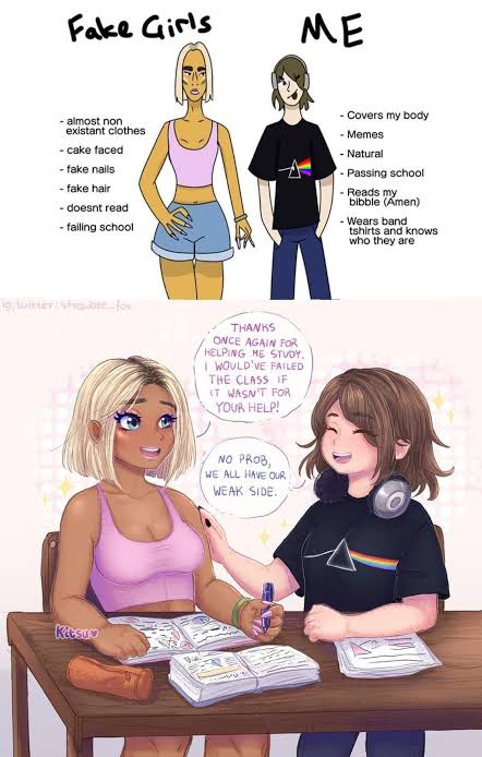 so oo actually not being like others (like not fitting in the norm is bad?) other girls just means the majority. being like other girls and not being like other girl should just be ok. saying we shouldn't insult or make fun of peope who are 'not like other girls' most of the times it's not their fault. no whatever the reason in fact they should be able to be them. [not like other girls isn't necessarily an insult to these girls ; not being like the others should be ok and being like the others should be ok aslongasyoudonthurtanyone I'm so bad at writing ><