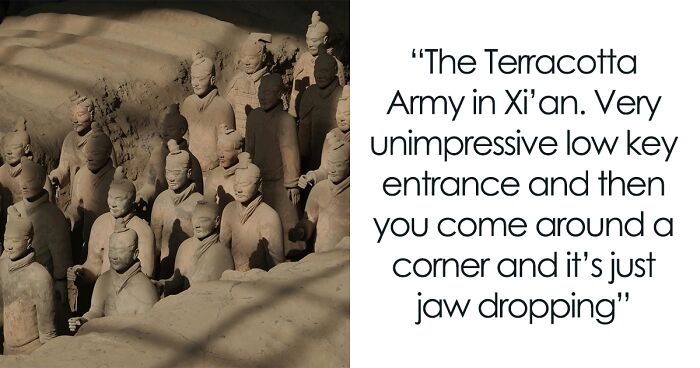 The terracotta soldiers in xian. Very unimpressive low key entrance and then you come around a corner and it’s just jaw dropping. Dunno if they’ve changed the entry but it’s very much “under promise, over deliver”. Quite awesome.