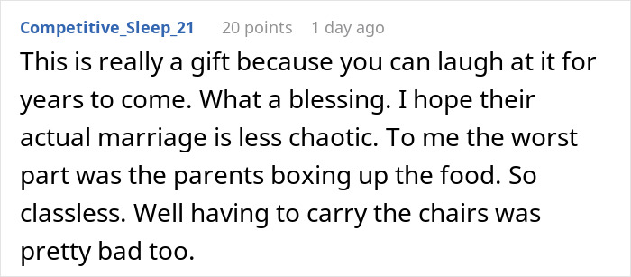 Attending a great wedding can create lifelong memories, but attending an unfortunate one can be unforgettable in the worst ways. We would love to hear your thoughts on this story in the comments below, pandas. Have you ever been to a similar wedding? Feel free to share, and then if you’re interested in checking out another Bored Panda article discussing wedding shaming, look no further than right here!