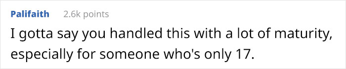 It seems that other redditors thought breaking up and siding with family was the right decision too. They thought the OP was really mature for his age and wasn’t acting like a jerk at all.